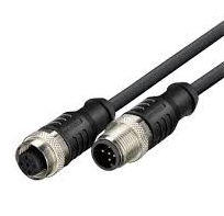 Network cable with RJ45 to M12 connector, used to connect a PC to a Zebra fixed scanning device for configuration via Ethernet.